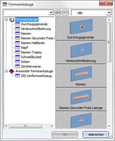 Es öffnet sich ein Fenster, in dem Sie aus dem Katalog das gewünschte Formwerkzeug auswählen können.