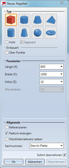 Beispiel: Erzeugung von Teilen mit Verbindungsparametern - Schritt 1