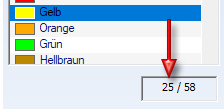 Welche Farbe welche Farbnummer hat, sehen Sie im Farbeditor. Dort wird unterhalb der Farbliste die Farbnummer der gewählten Farbe angezeigt, z. B.