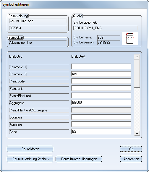 Das Symbol wird nach der Auswahl in den Symboleditor geladen, und die Symbol-Dialogmaske geöffnet. Hier können Sie z.B. den Symbolnamen ändern.