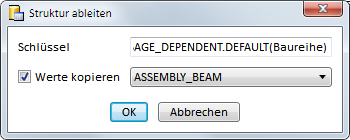 Übernehmen Sie den vorgeschlagenen Namen DEFAULT(Baureihe). Wollen Sie die Einstellungen einer vorhandenen Konfiguration kopieren, z. B. ASSEMBLY_BEAM, dann aktivieren Sie die Checkbox und wählen Sie die Konfiguration.