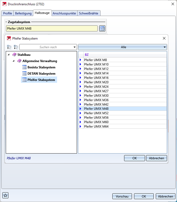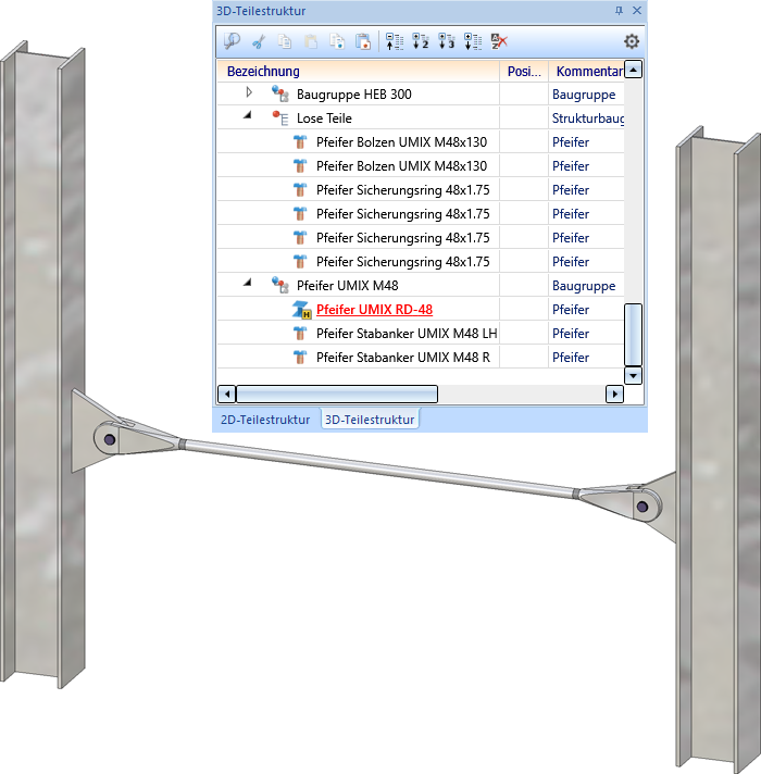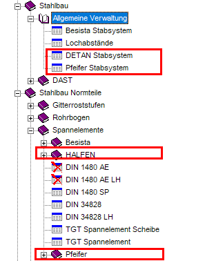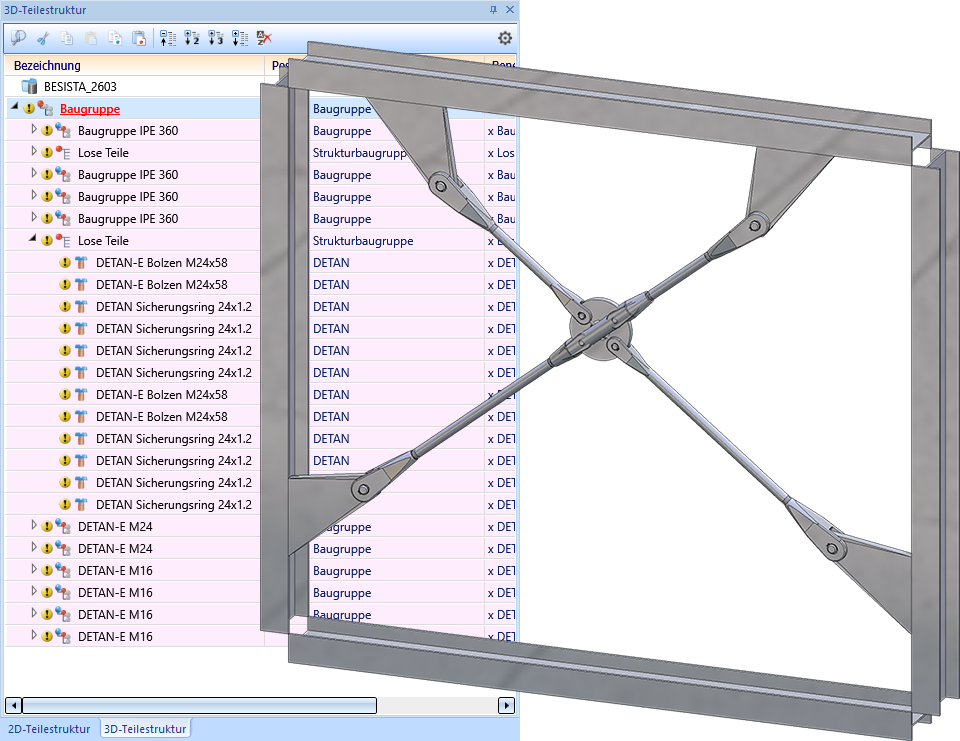 Der Kreuzverband (2603) unterstützt ab SP2 neben Besista Zugstabsystemen auch Zugstabsysteme von DETAN und Pfeifer. Dazu sind die HiCAD Kataloge Stahlbau Normteile > Spannelemente und Stahlbau > Allgemeine Verwaltung entsprechend erweitert worden.