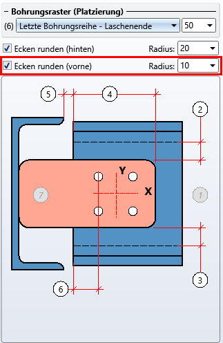 Laschen lassen sich ab SP2 auch auf der angeschweißten Seite runden, um die Walzradien des durchlaufenden Profils zu berücksichtigen. Dazu ist die Registerkarte Lasche entsprechend erweitert worden.