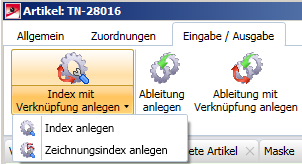 Sie finden den Aufruf dazu in der jeweiligen Detailmaske etwa eines Artikel im Ribbon Eingabe / Ausgabe bzw. in der Dokument-Detailmaske im Ribbon Eingabe, sowie im jeweiligen Kontext-Menü mit einem Rechtsklick auf den leeren Bereich einer Artikel- oder Dokumentstamm-Maske oder auf einen Eintrag in einer Ergebnisliste.