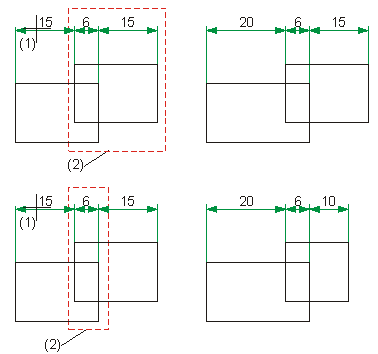 Maße in neues Teil, im Rechteck Maße in neues Teil, innerhalb Kontur Maße in neues Teil, Alle |