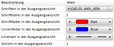 Mit diesen Parameter legen Sie Farbe, Linienart und Schicht für den Rahmen von Ansichtsgruppen bei der Zeichnungsableitung fest.
