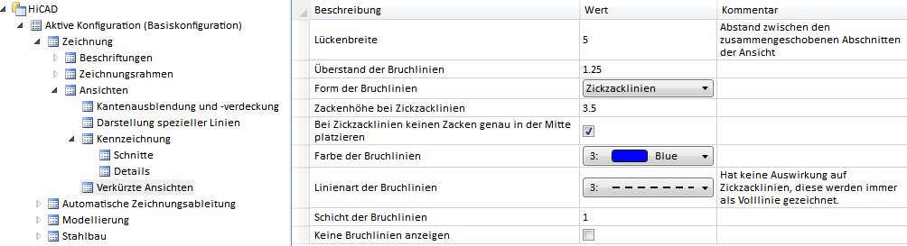 Hier legen Sie die Voreinstellungen der Verkürzungsparameter für neue Konstruktionen fest.