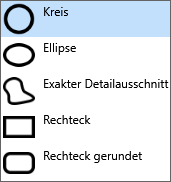 Die ISD-seitige Voreinstellung ist Kreis. Beim ersten Aufruf dieser Funktion innerhalb der aktuellen Konstruktion werden im Dialogfenster als Voreinstellung die Einstellungen aus dem Konfigurationsmanagement verwendet (Zeichnung > Ansichten > Kennzeichnung > Details). Bei weiteren Aufrufen der Funktion gelten die zuletzt verwendeten Text- und Linienparameter als Voreinstellung.