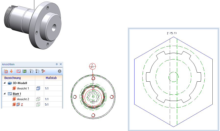 Die verwendete Skizze bleibt auch nach der Erzeugung der Detailansicht erhalten. |