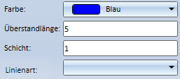 Für diesen Bruchlinientyp lassen sich Farbe, Schicht und Linienart sowie der Überstand (2) wählen.
