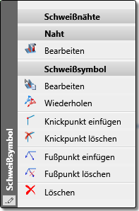- Zur Bearbeitung der Schweißnahtbeschriftung, klicken Sie mit der rechten Maustaste auf die Beschriftung und wählen im Kontextmenü die gewünschte Funktion.