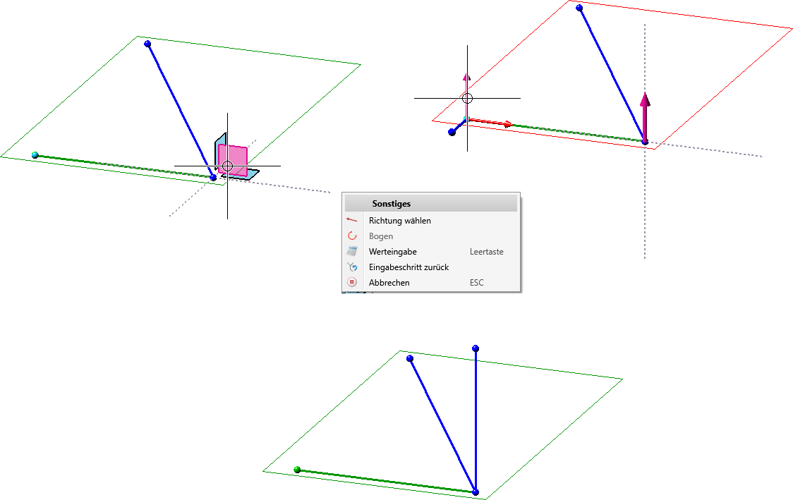 Bei 3D-Skizzen können Sie vor der Punkt- / Linienauswahl die Zeichenebene wechseln.