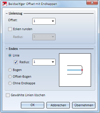 Nach dem Aufruf der Funktion wird Dialogfenster Beidseitiger Offset mit Endkappen angezeigt.