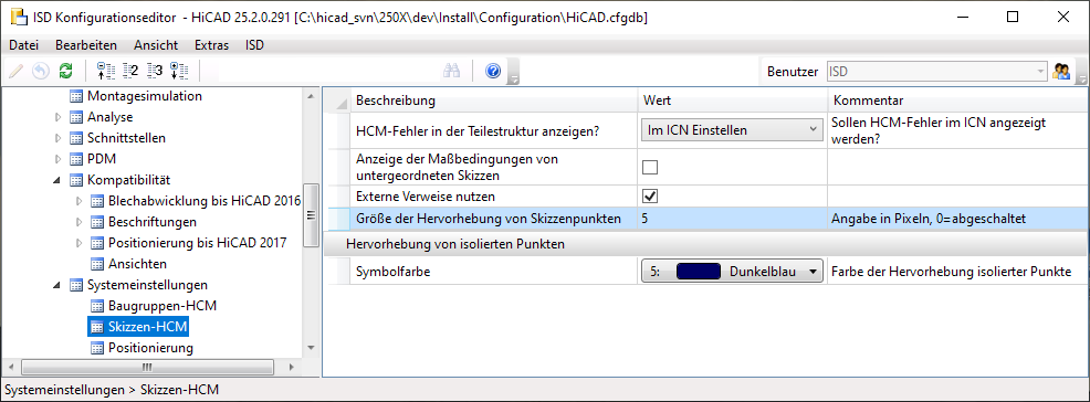 Die Größe und die Farbe der Hervorhebung legen Sie im Konfigurationsmanagement unter Systemeinstellungen > Skizzen-HCM fest.