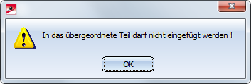 - Skizzen kann kein Nebenteil untergeordnet werden. Wird dies versucht, dann erscheint die folgende Meldung: