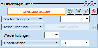 Diese Optionen sind dann sinnvoll, wenn das zu wiederholende Teil nicht am Anfang des Linienzuges liegt. In diesem Fall haben Sie die Möglichkeit durch Angabe einer Startwertes den Abstand des Teils vom Linienzuganfang zu berücksichtigen. Sie können den Startwert explizit durch eine Werteingabe festlegen oder durch Angabe eines Startpunktes auf dem Linienzug. Haben Sie hier die Option Startpunktauswahl gewählt, dann klicken Sie auf das Symbol