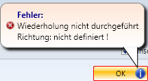 Zeigt an, dass Sie für die Funktionsausführung unbedingt notwendige Angaben nicht gemacht haben. Wenn Sie den Cursor über das Symbol bewegen, erhalten Sie Informationen darüber, welcher Schritt vor Ausführung der Funktion unbedingt noch erforderlich ist, beispielsweise:
