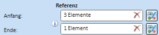 Wird ein bereits gewähltes Element erneut gewählt, dann wird es aus der Liste der Referenzen entfernt. Sollen alle Anfangs- oder Endreferenzen entfernt werden, dann klicken Sie im jeweiligen Eingabefeld auf das Symbol Löschen