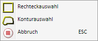 Punkte verschieben im Rechteck oder innerhalb Kontur, zwei 3D-Punkte Alle innerhalb beliebiger Rechtecke oder geschlossener Konturen liegenden Punkte werden durch Angabe eines Vektors verschoben. Nach Aufruf der Funktion ist die Rechteckauswahl aktiv. Mit der rechten Maustaste haben Sie die Möglichkeit, das Kontextmenü mit weiteren Optionen zu aktivieren. Mit den Funktionen des Menüs können Sie zwischen Rechteck- und Konturauswahl wechseln oder die Funktion abbrechen.