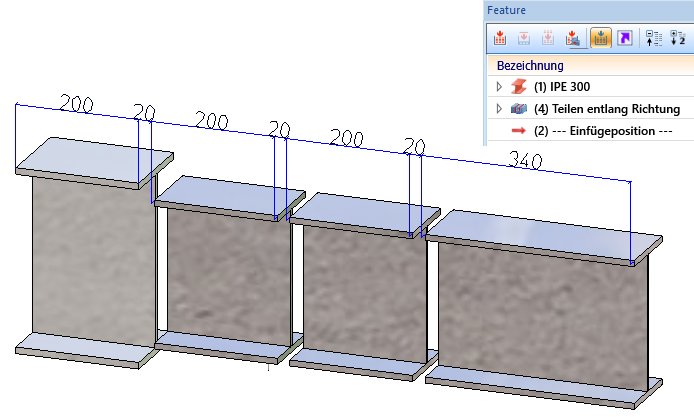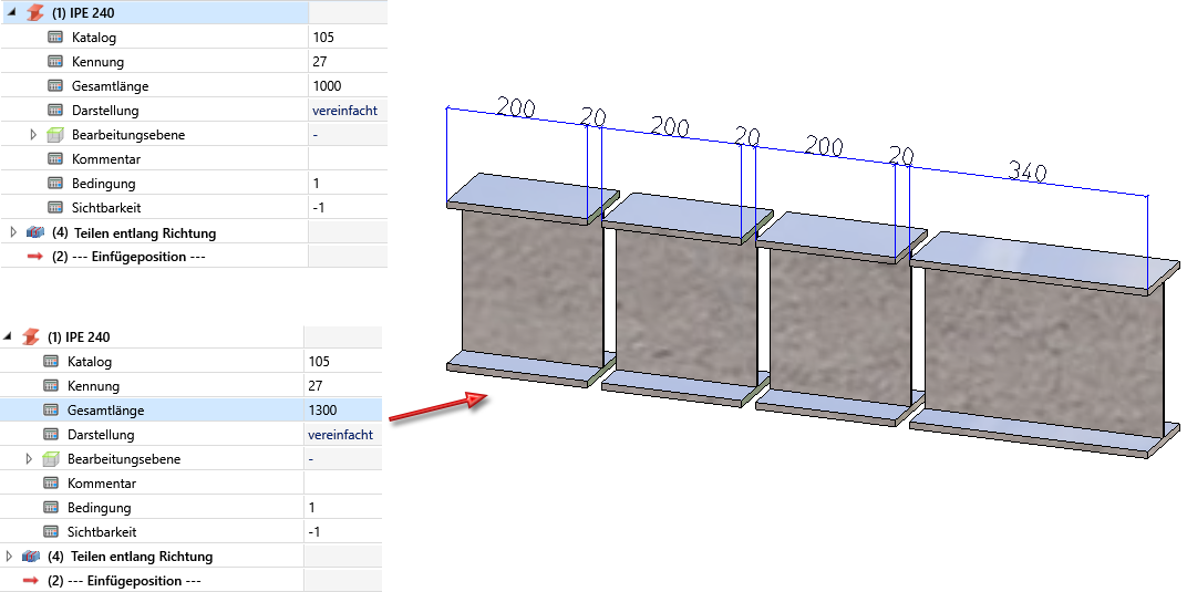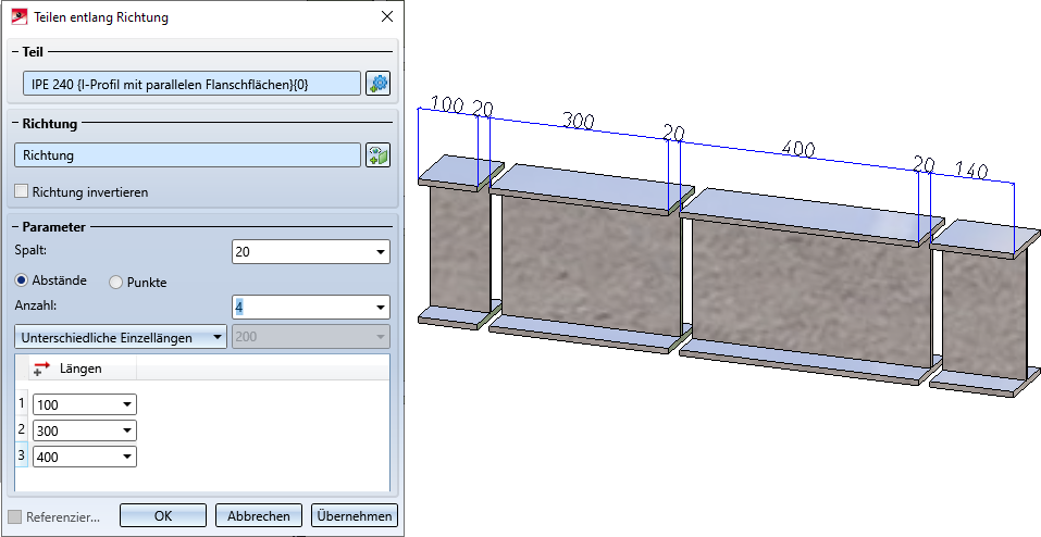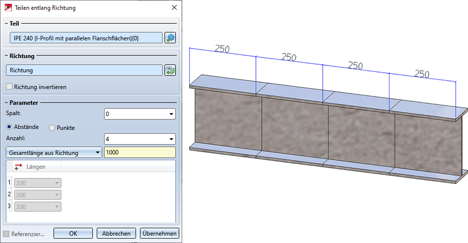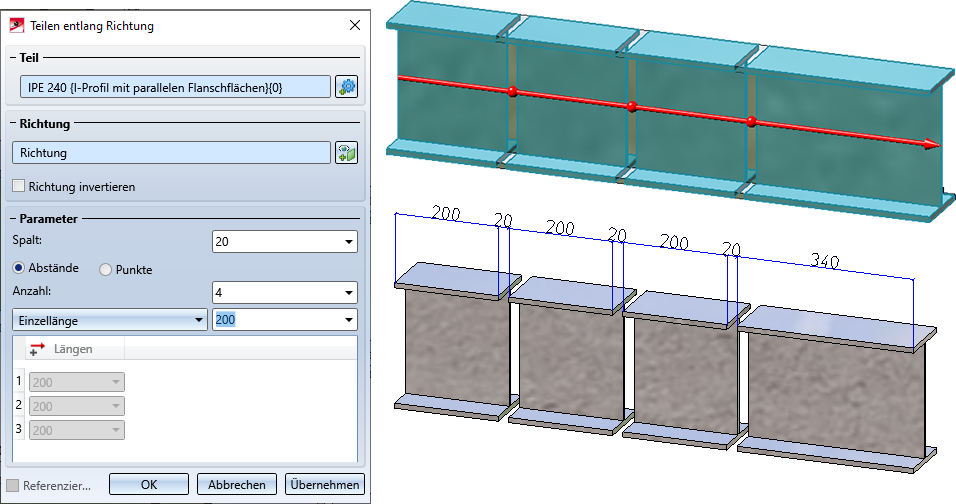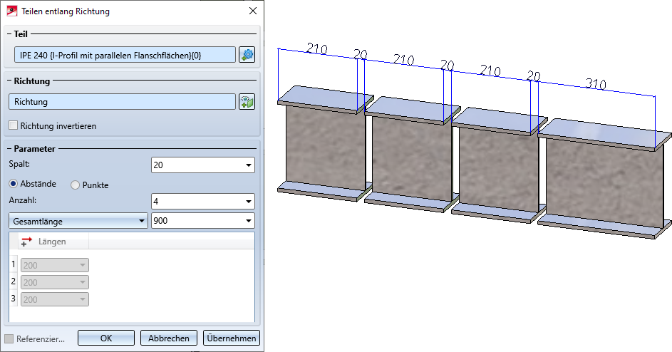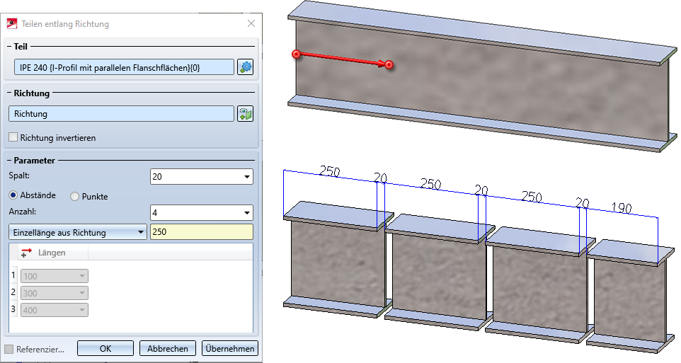 Stahlbau > Verlängern > Teilen > Teilen entlang Richtung