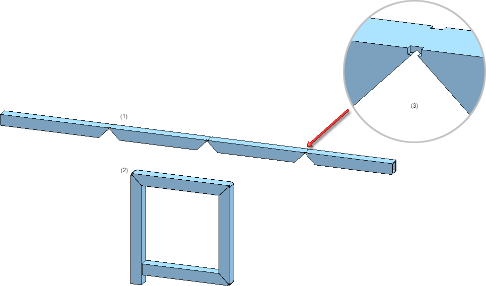 Die praktische Verwendung der lokalen Deformation soll an einem Beispiel gezeigt werden. Die Abbildung zeigt das Ausgangsteil (1) und das gewünschte Ergebnis (2). (3) zeigt eine Vergrößerung der "Knickstelle".