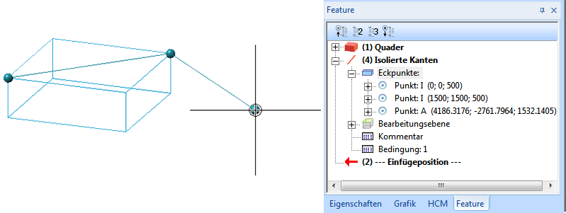 Bei allen oben aufgeführten Funktionen wird ein Feature mit dem Namen Isolierte Kanten in das Feature-Protokoll eingetragen, das die eingefügten Kanten enthält.