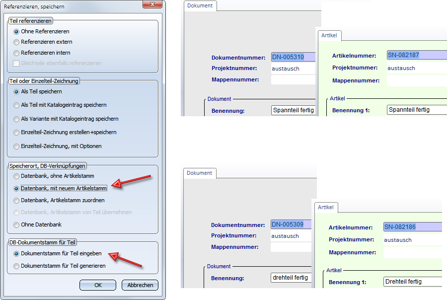 Dadurch wird automatisch eine Bauteil – Teilegeometrie-Verknüpfung zwischen dem Artikel und der neuen Geometrie erzeugt. Damit ist jetzt beispielsweise der Artikel Spannteil fertig mit zwei verschiedenen Geometriemodellen verknüpft.