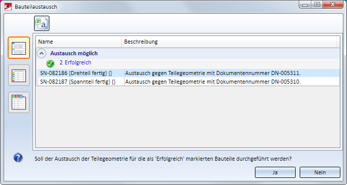 Erst mit einem Klick auf Ja wird der Austausch für die als erfolgreich markierten Teile endgültig durchgeführt.