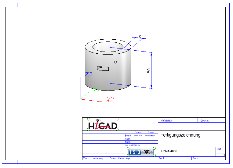 Für diese Baugruppe ist mit der Funktion Konstruktion > Speichern/Referenzieren > Teil... (Option Einzelteilzeichnung) eine Einzelteilzeichnung erstellt worden.