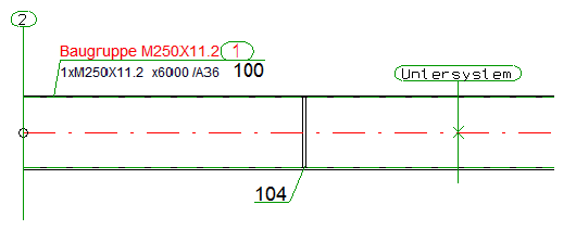 - An Beschriftungsfahnen des Rasters und des Raster-Untersystems können Maße gesetzt werden.