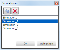 Wählen Sie die gewünschte Simulation aus und verlassen Sie das Fenster mit OK. Im Andockfenster wird anschließend die gewählte Simulation angezeigt.