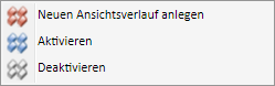 Ein Ansichtsverlauf kann über sein Kontextmenü (rechte Maustaste) aktiviert, deaktiviert, gelöscht und umbenannt werden.