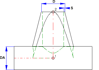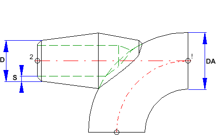 D=Außendurchmesser des Teils, DA=Außendurchmesser des Teils an das angeschlossen wird, S=Wanddicke |