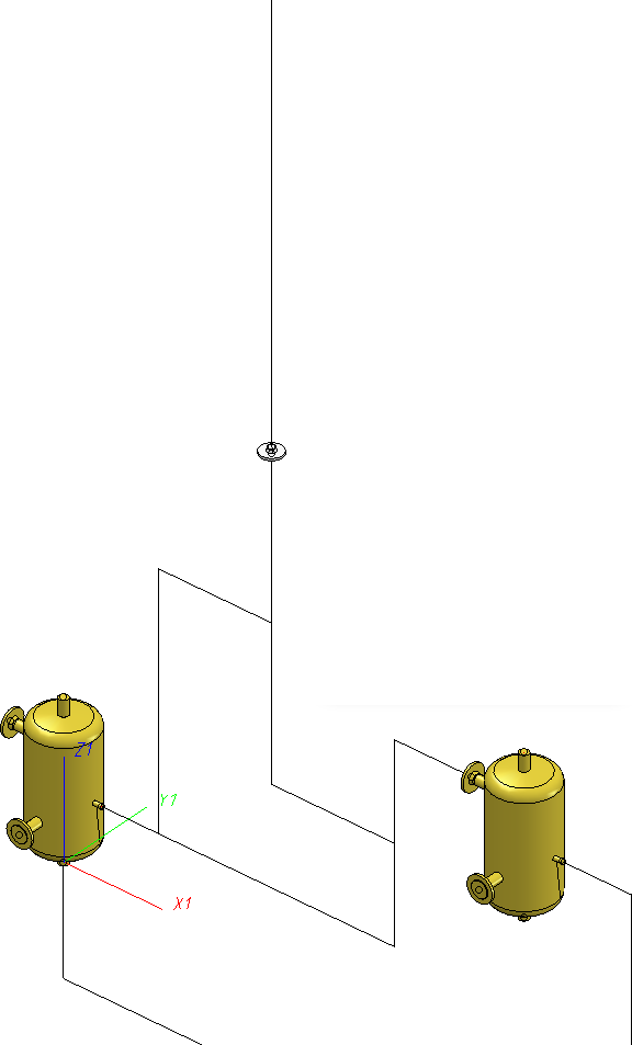Der Behälter wird - da er nicht zur Rohrleitung gehört - nur im Detailfenster dargestellt. Dies dient der Übersicht, da Behälter üblicherweise größere Bauteile sind. In der Detailansicht können längere Teile, also gerade Rohre und Leitkanten, teilweise nur angedeutet zu sehen sein. Hier im Beispiel wird ein Teil des Leitkantenzuges durch eine gestrichelte Linie angedeutet. Auch dies dient der Übersicht.