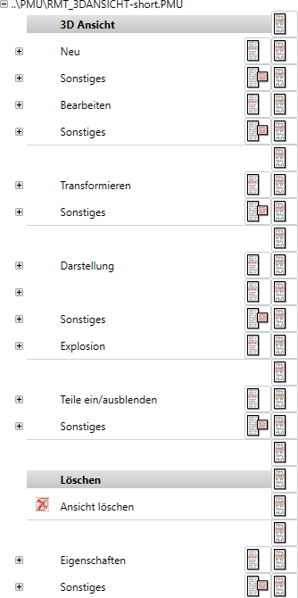 Hier werden die Einträge des Kontextmenüs in einer Baumstruktur aufgelistet.