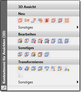 Wenn Sie Funktionen der Kontextmenüs nicht benötigen, Überschriften nicht angezeigt werden sollen oder wenn Sie eine andere Icongröße wählen möchten, dann haben Sie die Möglichkeit, die Kontextmenüs entsprechend anzupassen und zu verkürzen. Klicken Sie dazu im jeweiligen Kontextmenü unten links auf das Symbol