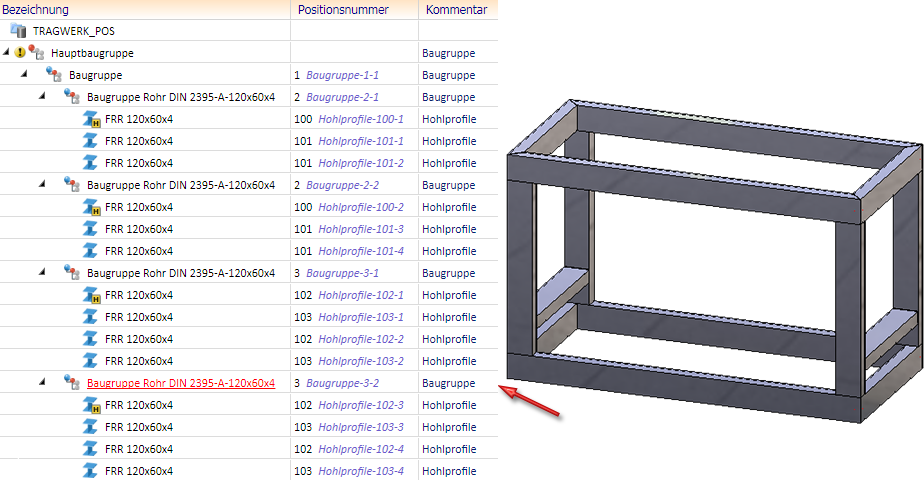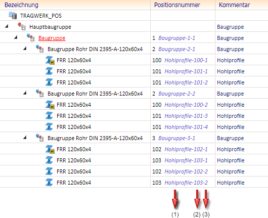 Strukturbaugruppen sollen eine eigene Teilegruppe bilden und anders als die anderen Baugruppen nummeriert werden.