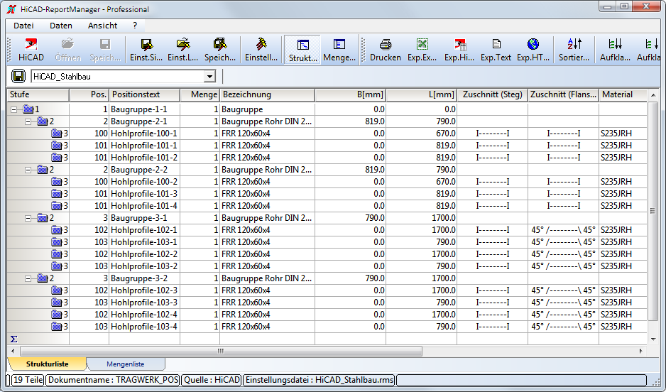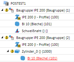 vor die Teilegruppe Stahlbauteil gesetzt werden.
