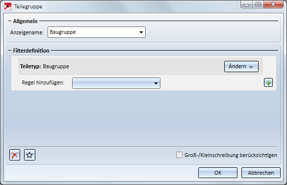 * Alternativ kann hier auch die Teilegruppe Baugruppe so geändert werden, dass dort unter Teilefilter ändern
