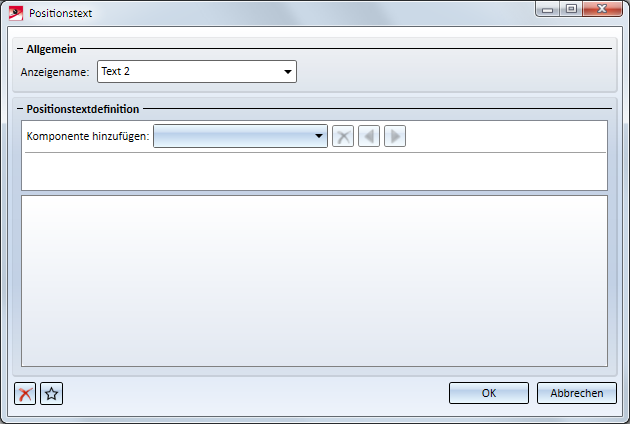 Wählen Sie in der Auswahlbox Komponente hinzufügen, die Komponenten aus, aus denen sich der Positionstext zusammensetzen soll. Folgende Komponenten sind möglich: