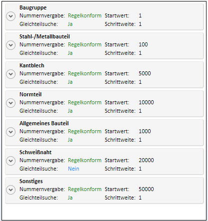 Hier können Sie wählen, ob die Nummernvergabe für die aktuelle Teilegruppe regelkonform oder unreglementiert erfolgen soll.