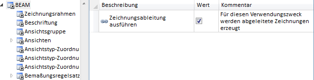 Eine Besonderheit ist der Parameter Zeichnungsableitung ausführen, den Sie direkt unter dem jeweiligen Verwendungszweck einstellen können. Über diesen Parameter können Sie festlegen, ob für den aktuellen Verwendungszweck bei der Zeichnungsableitung Ansichtsgruppen erzeugt werden sollen oder nicht.