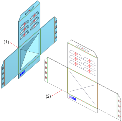 (2) Unterschiedliche Farbe bei den unterbrochenen Biegelinien und Biegezonen