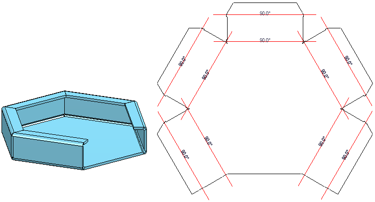 erstellt haben. Auch bei der 3-Eckigen SZ20-Kassette in der Elementverlegung wird in der "Spitzecke" das Material abgetragen. Der Ausnehmungsbereich wird bei der Abwicklungserzeugung erkannt. D. h. Facetten, die keine Deckfacetten sind, parallel zur Deckfläche liegen und keine Normbearbeitungsflächen sind, bilden den Ausnehmungsbereich.