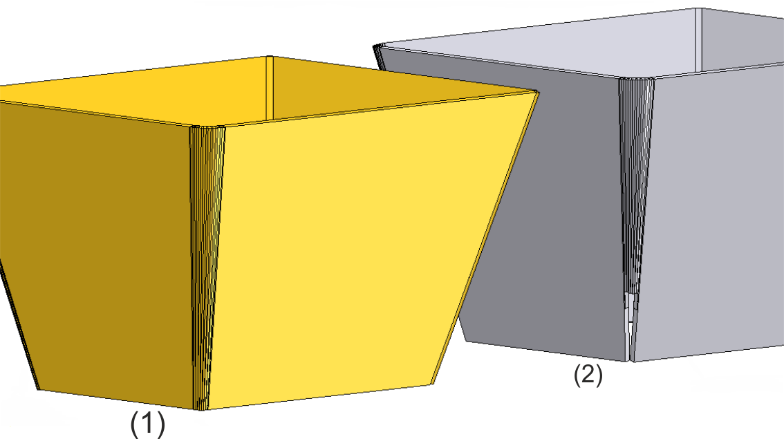 Laufen mehrere Biegezonen in einer Ecke zusammen, wird das Blech in der Ecke geweitet, so dass die Biegezonen Platz finden. Die Stirnflächen der Biegezonen sind ebene Flächen. Sie werden nicht an die benachbarten Laschen angepasst. |