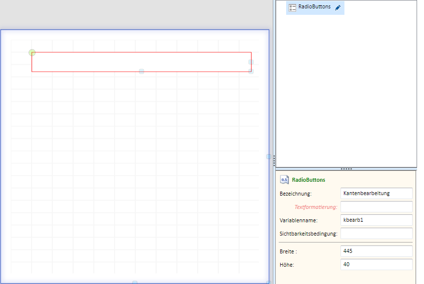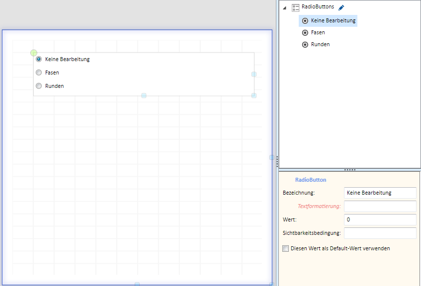 Das GUI-Objekt RadioButtons stellt eine Gruppe von Radiobuttons dar. Jeder Button ist ein Untereintrag in der Baumstruktur.