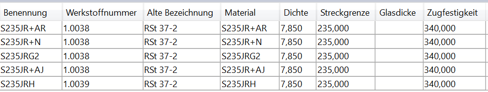 Der angelegte Name entspricht dann z. B. einer Werkstoff-Benennung in HELiOS: