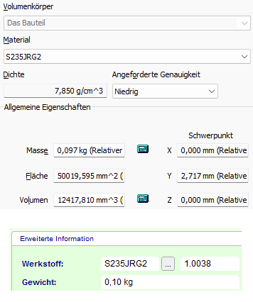 Hinweis: Die Dichte ist in Inventor erforderlich für die Gewichtsberechnung .