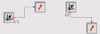Die Cursorposition bestimmt den Anfangs- und Endpunkt der Verbindungslinie. Der Punkt In Arbeit wird dem Schema zugefügt.