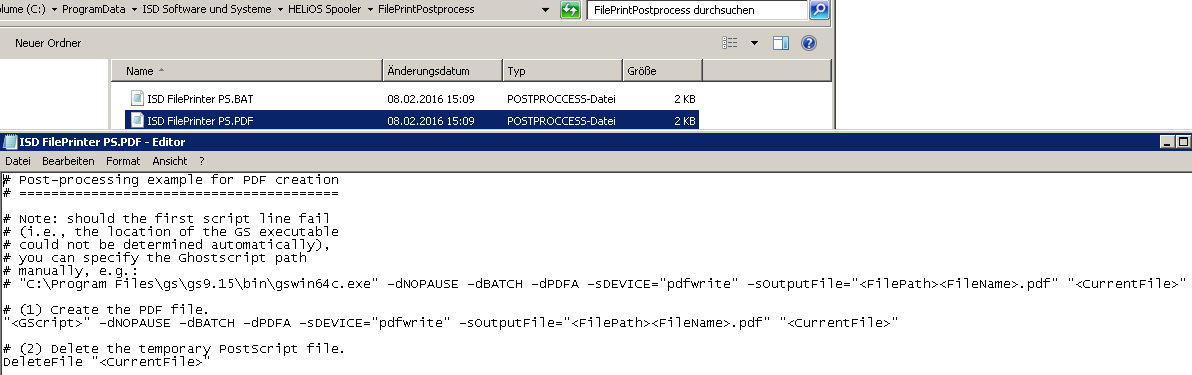 Unter C:\ProgramData\ISD Software und Systeme\HELiOS Spooler\FilePrintPostprocess\ finden Sie z. B. die Systemdatei ISD FilePrinter PS.PDF.PostProccess.